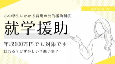 お金の知識小・中学校の【就学援助】のデメリットは?ばれる?恥ずかしい?年収600万円台以下なら十分対象の可能性 年収が600万円台の人も、700万円台の人も、世帯の人数によって受けられる就学援助。知らない人は損をする、就学援助は恥ずかしい制度でもなければ、ばれる心配もありません。一番つらいのは、子供にそのしわ寄せがいく事では? 2021.05.06お金の知識